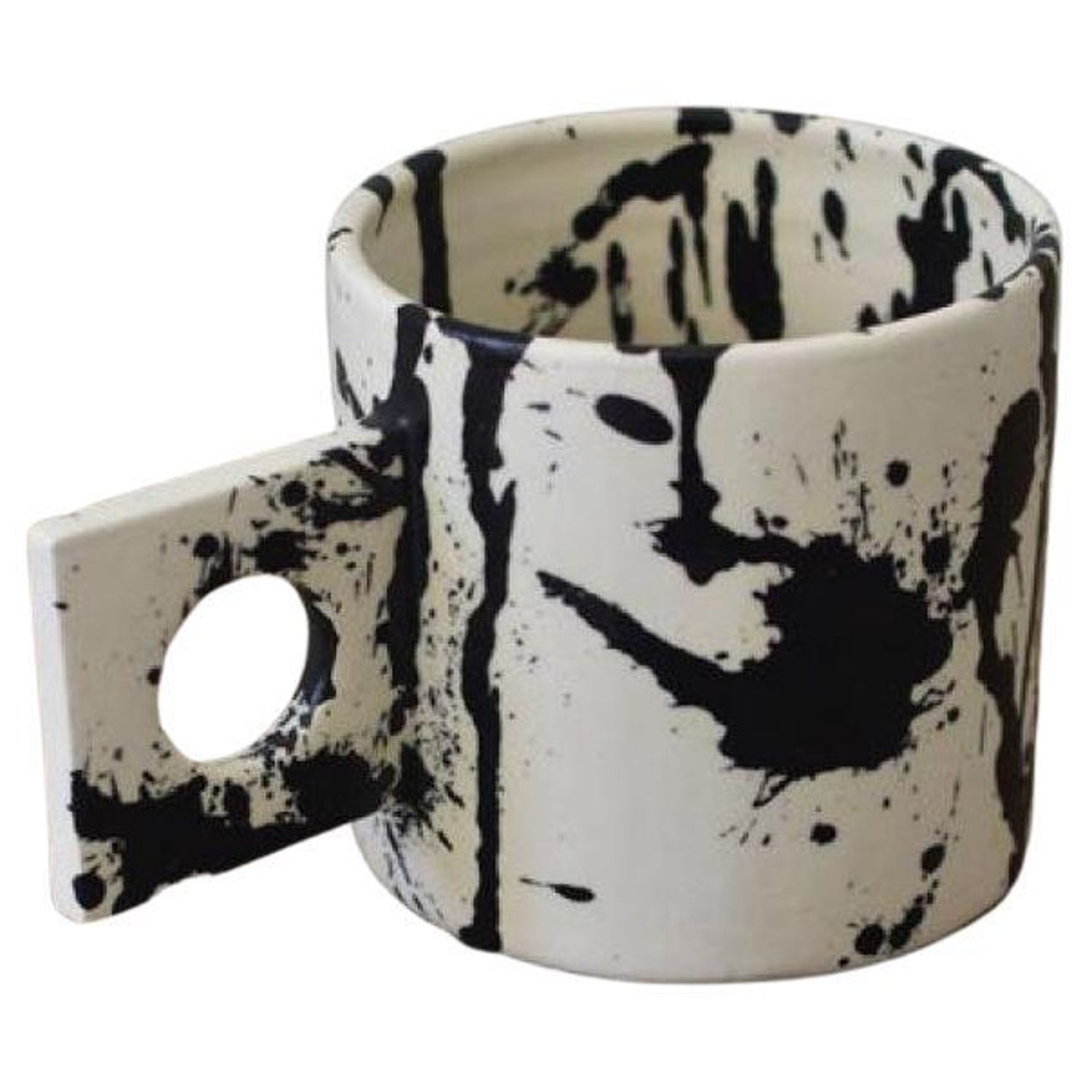 Handmade Modern Black And White Splattered Ceramic Rock Mug For Sale At 1stdibs