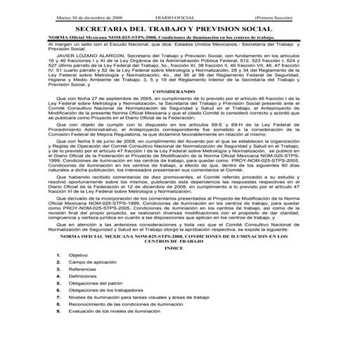 Web NOM-025-STPS-2008 Condiciones de iluminación en los centros de trabajo Son parte de la información técnica y administrativa que el registro debe contener excepto. Al margen un sello. Al margen un sello con el Escudo Nacional que dice.