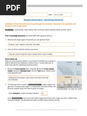 Identifying Nutrient Gizmo Biology Pdf Name Date Student Exploration Identifying Nutrients Directions Follow The Instructions To Go Through The Course Hero